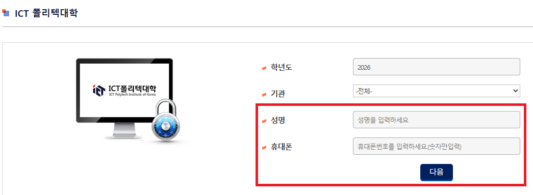 1. ICT폴리텍대학 회원가입을 한다. 한국정보통신공사협회 온라인경력시스템에서 경력신고가 완료되어야 회원가입이 가능하다. ICT폴리텍대학에 접속하여 '회원가입' 버튼을 클릭한다.