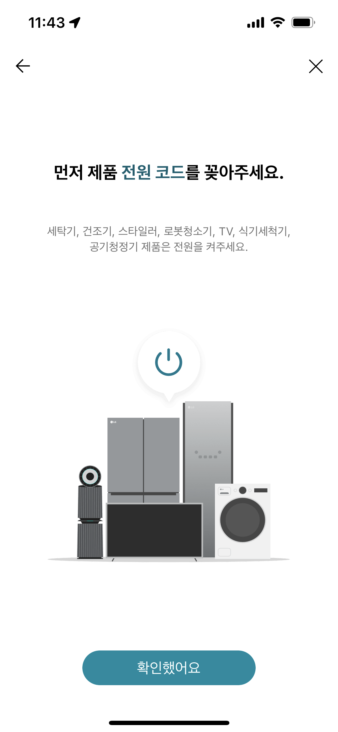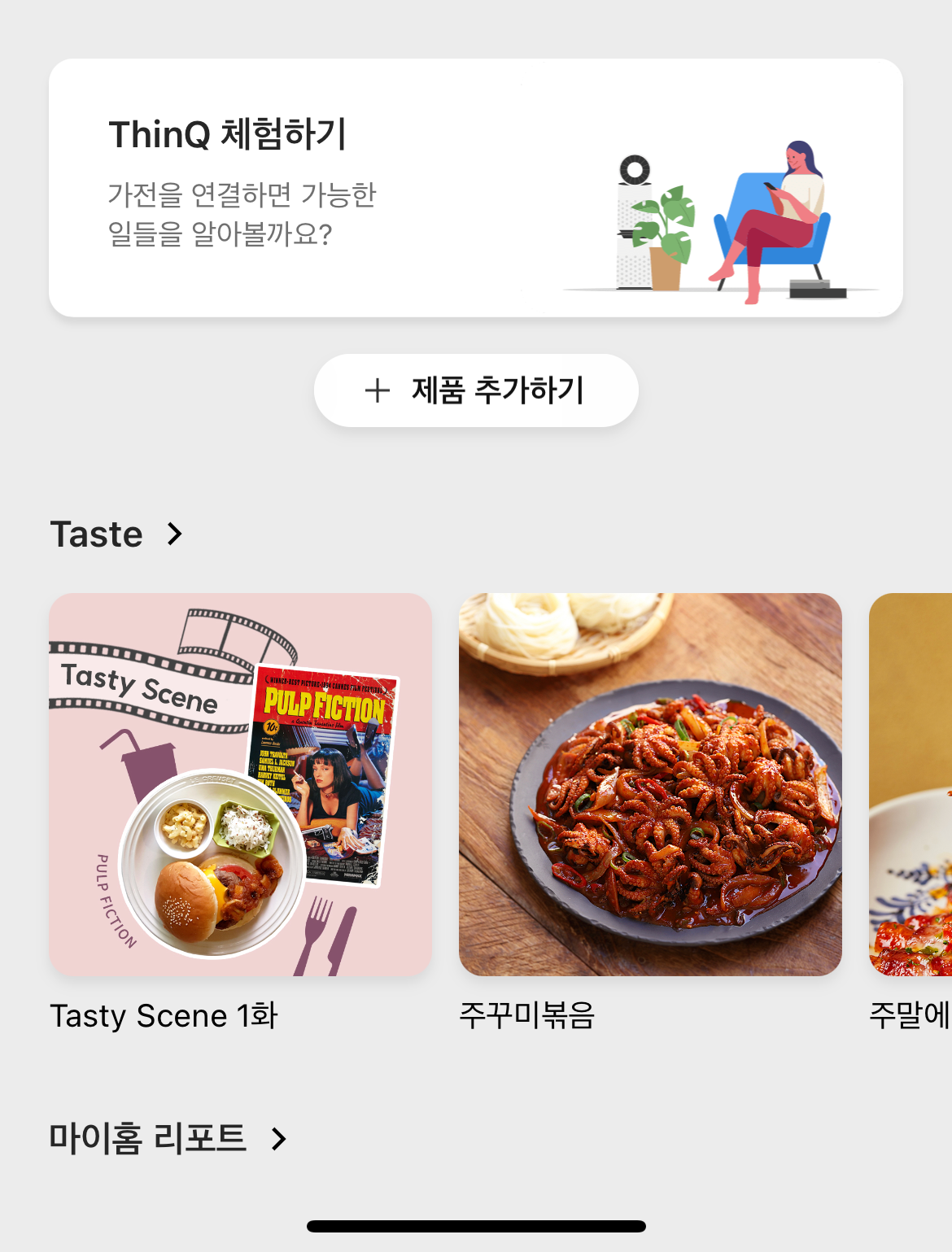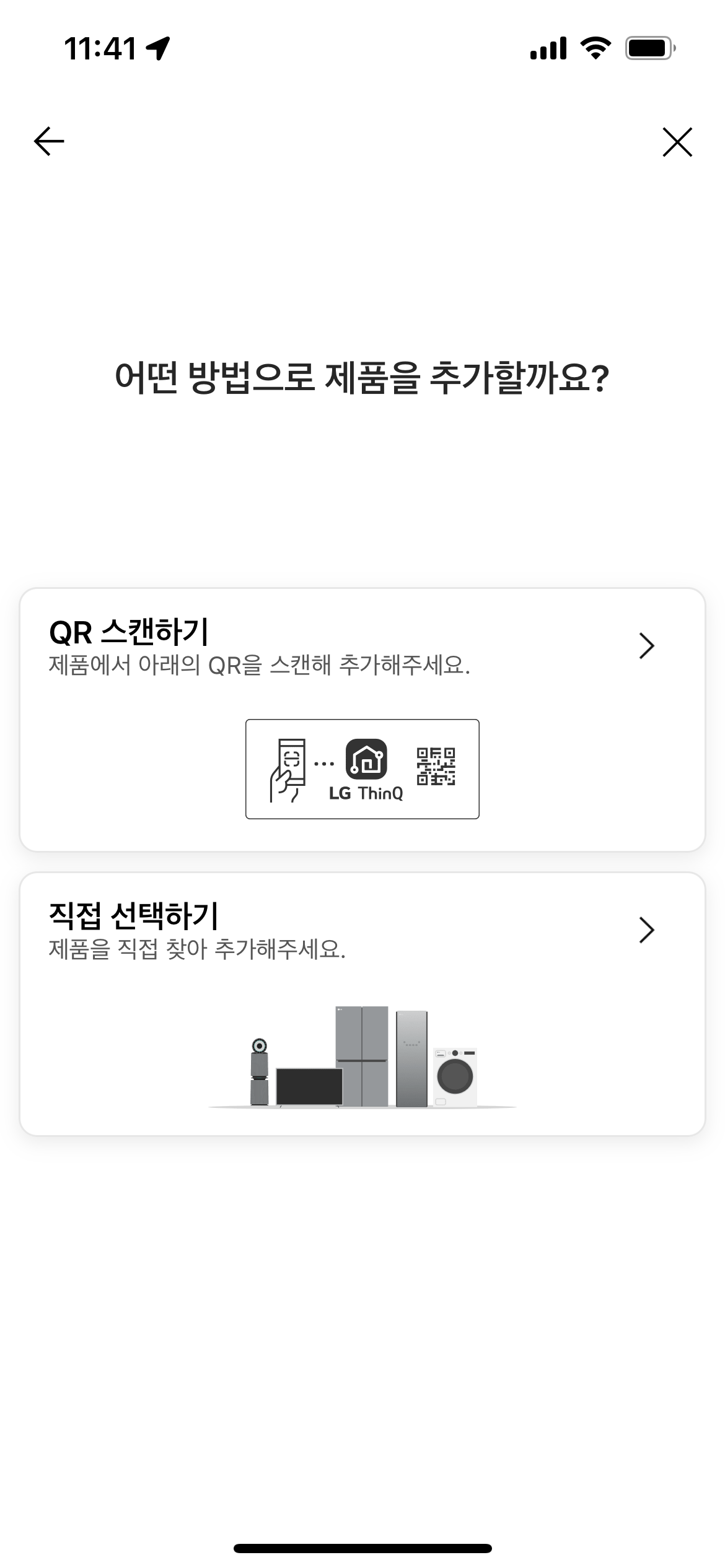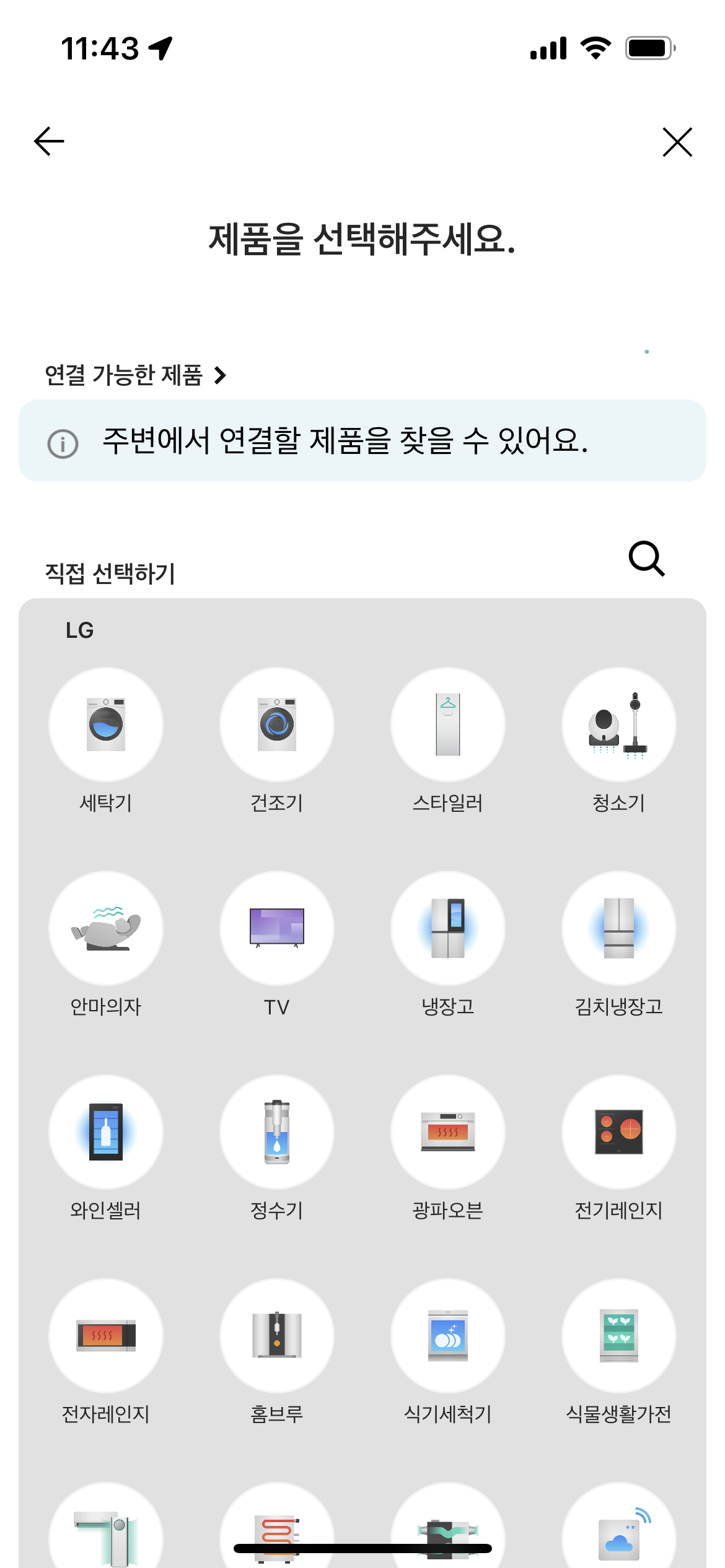 앱을 설치하고 실행한 뒤에 가운데 '제품 추가하기' 버튼을 눌러서 가전제품 추가가 가능하다.