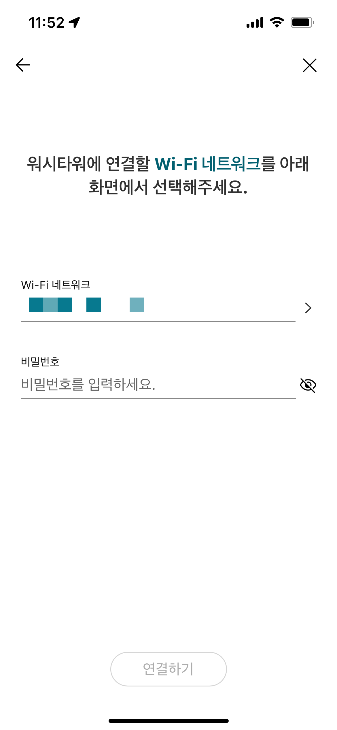 세탁기를 연결할 내 네트워크를 선택한다.