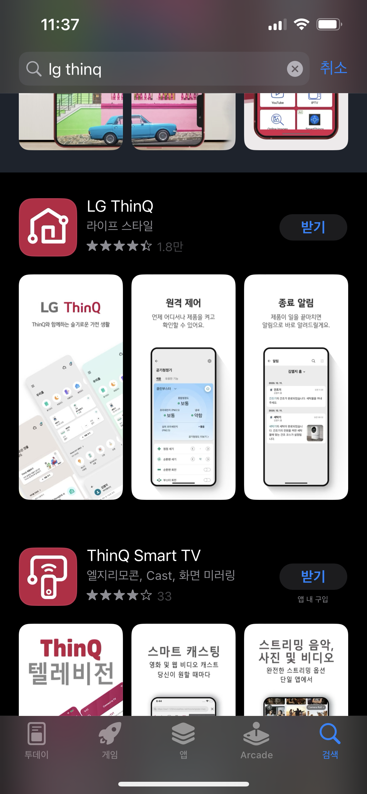 먼저 LG ThinQ 앱을 앱스토어에서 다운로드해서 설치한다.