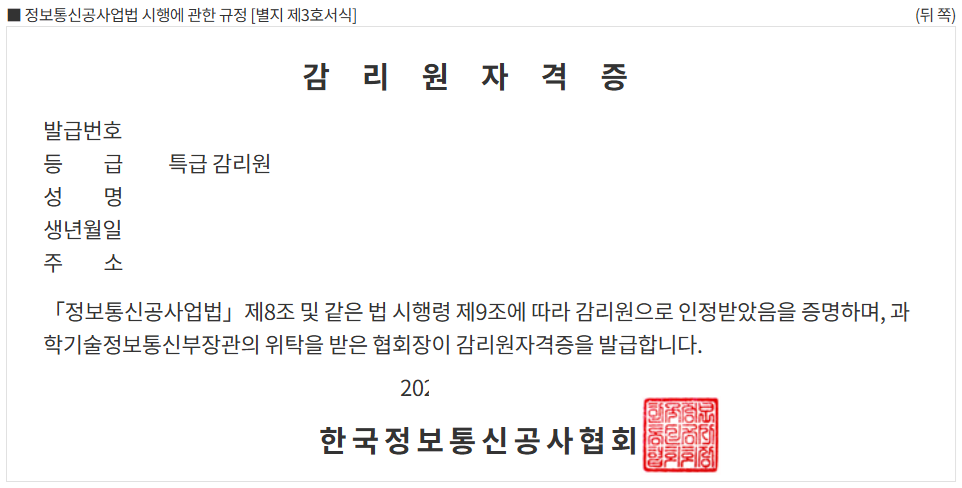 정보통신 기술자 특급과 감리원 특급을 취득했다.