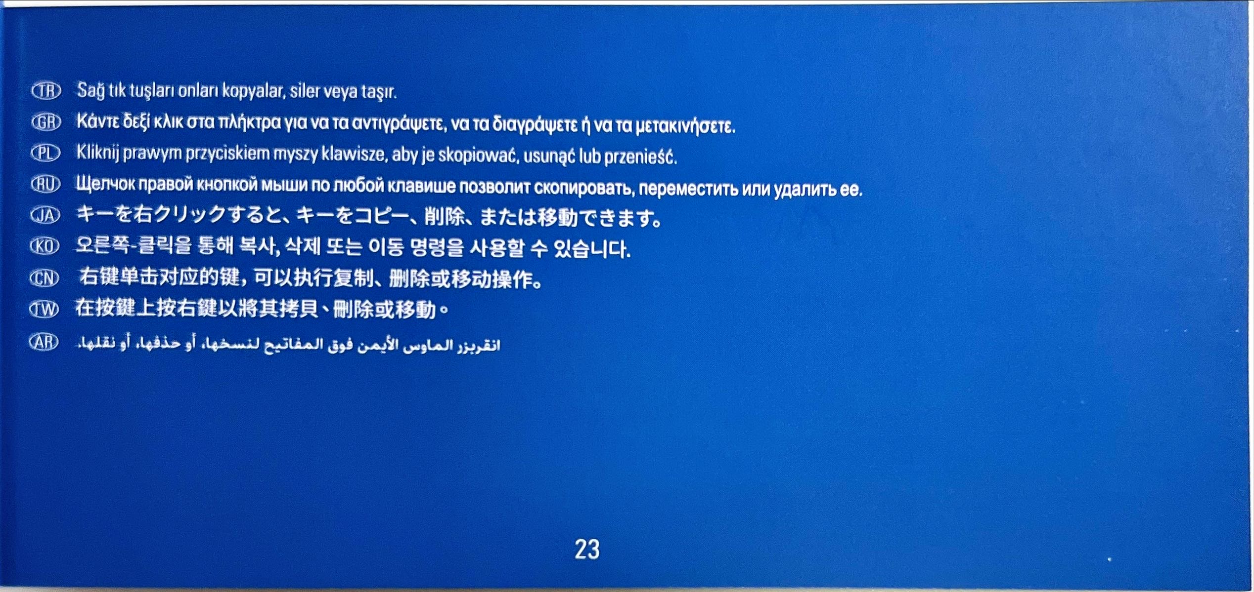 한글도 있는데 영어외 언어들과 안내문구만 번역해놓았다. 그림은 없어서 앞에 영문 가이드를 확인하면서 봐야한다.