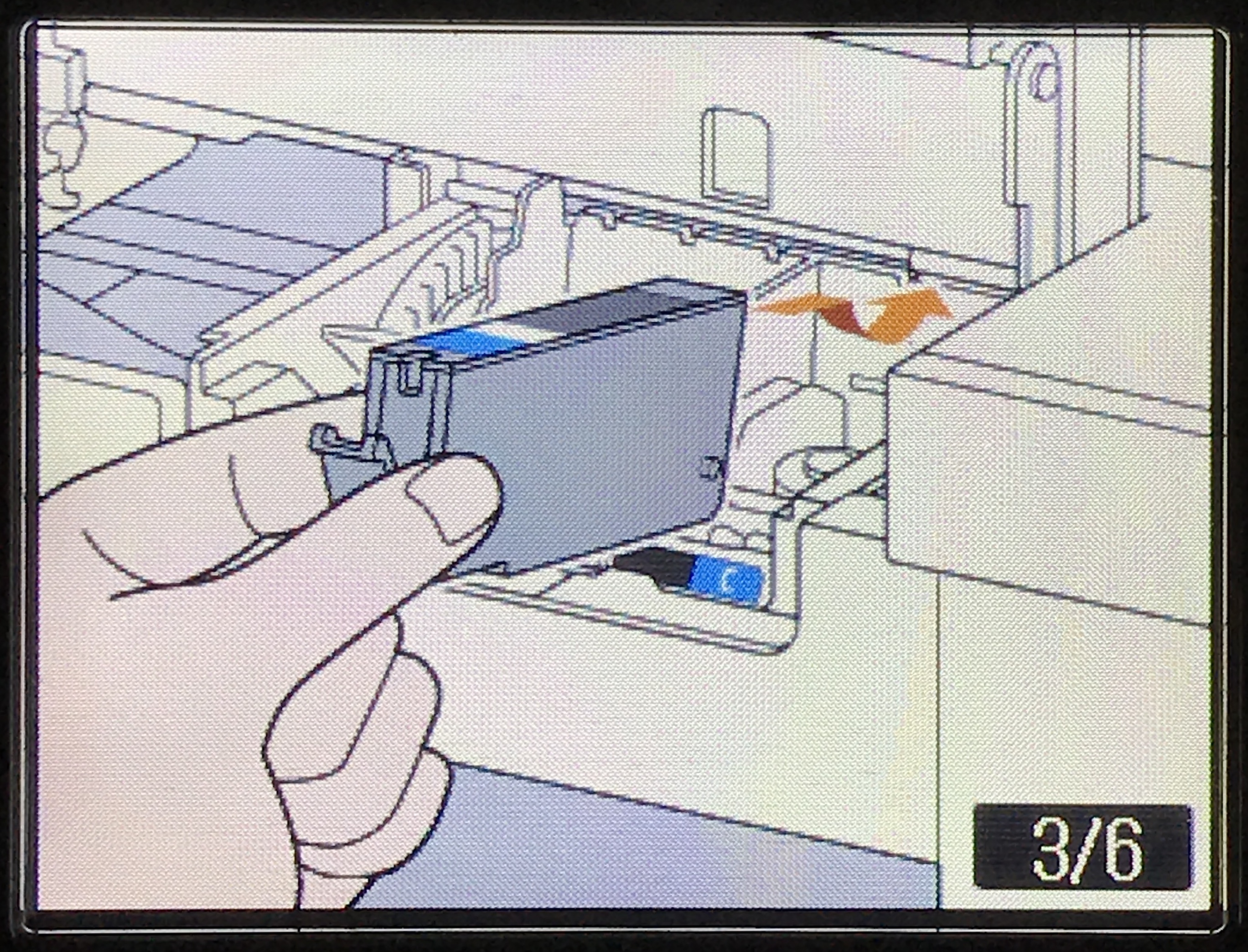 아래 사진과 같은 방향으로 넣고 아래로 꾹 눌러주먼 딸깍 소리가 나면서 카트리지가 장착된다.